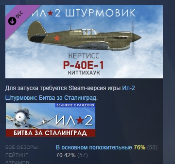 Ил-2 Штурмовик: P-40E-1 DLC STEAM GIFT  РОССИЯ