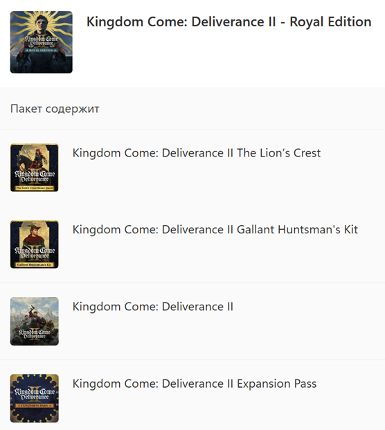 В состав Kingdom Come: Deliverance II Royal Edition входят: