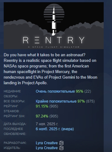 Добро пожаловать в Reentry — симулятор космического полета.