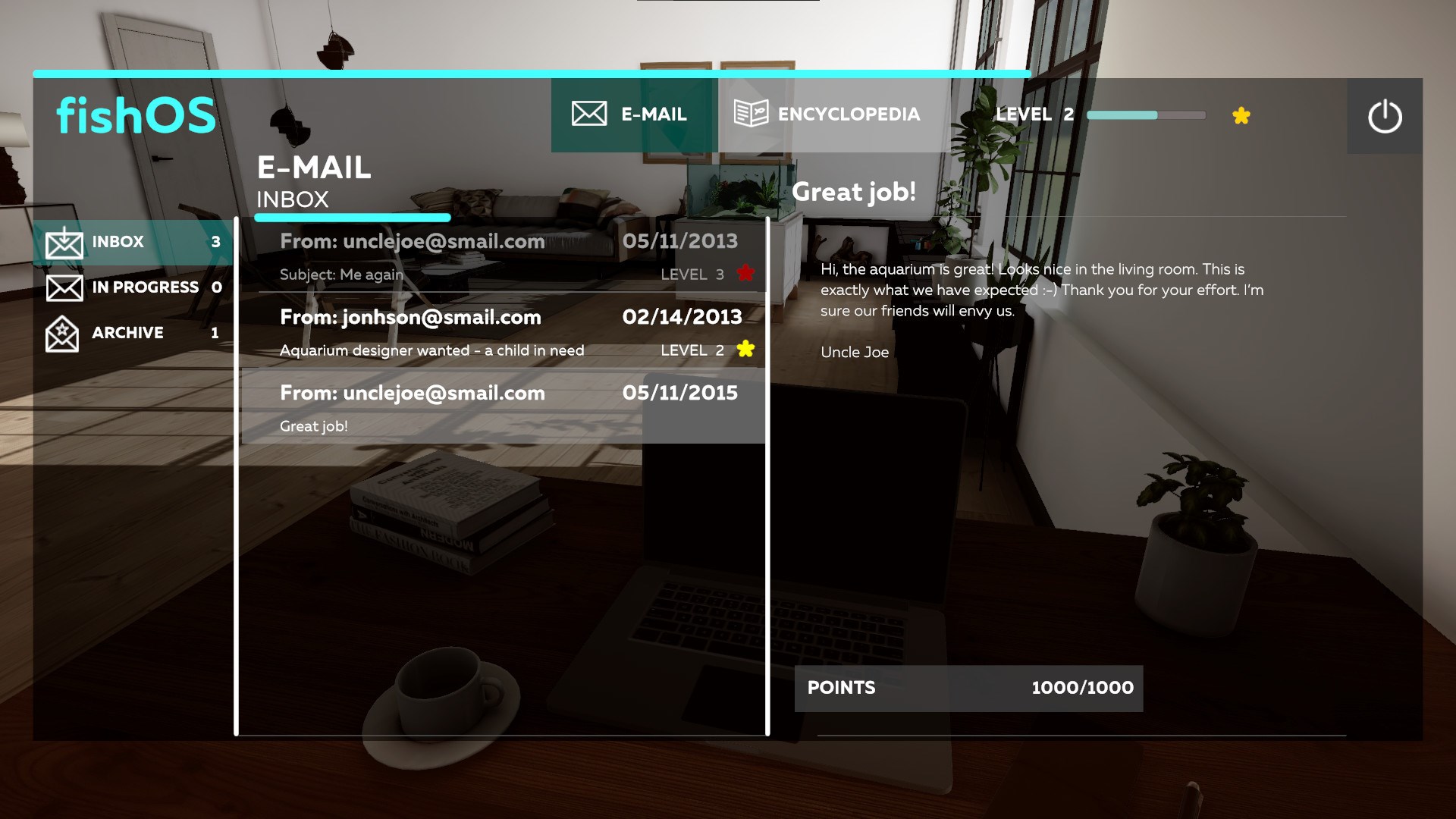 В Aquarium Designer вы проектируете аквариумы для клиентов, чтобы заработать деньги на новые элементы, которые пригодятся в будущем! Рестораны, отели, офисы и даже резиденция богатого бизнесмена – каждое место может извлечь свою выгоду от красочного аквариума, изобилующего жизнью! Прочитайте краткое описание проекта от клиента, выберите форму и размер аквариума, добавьте необходимое оборудование: фильтры, кондиционеры для воды и компрессоры. Немного гравия, украшений и рыбок – аквариум готов! Чем лучше вы справитесь, тем больше денег заработаете!