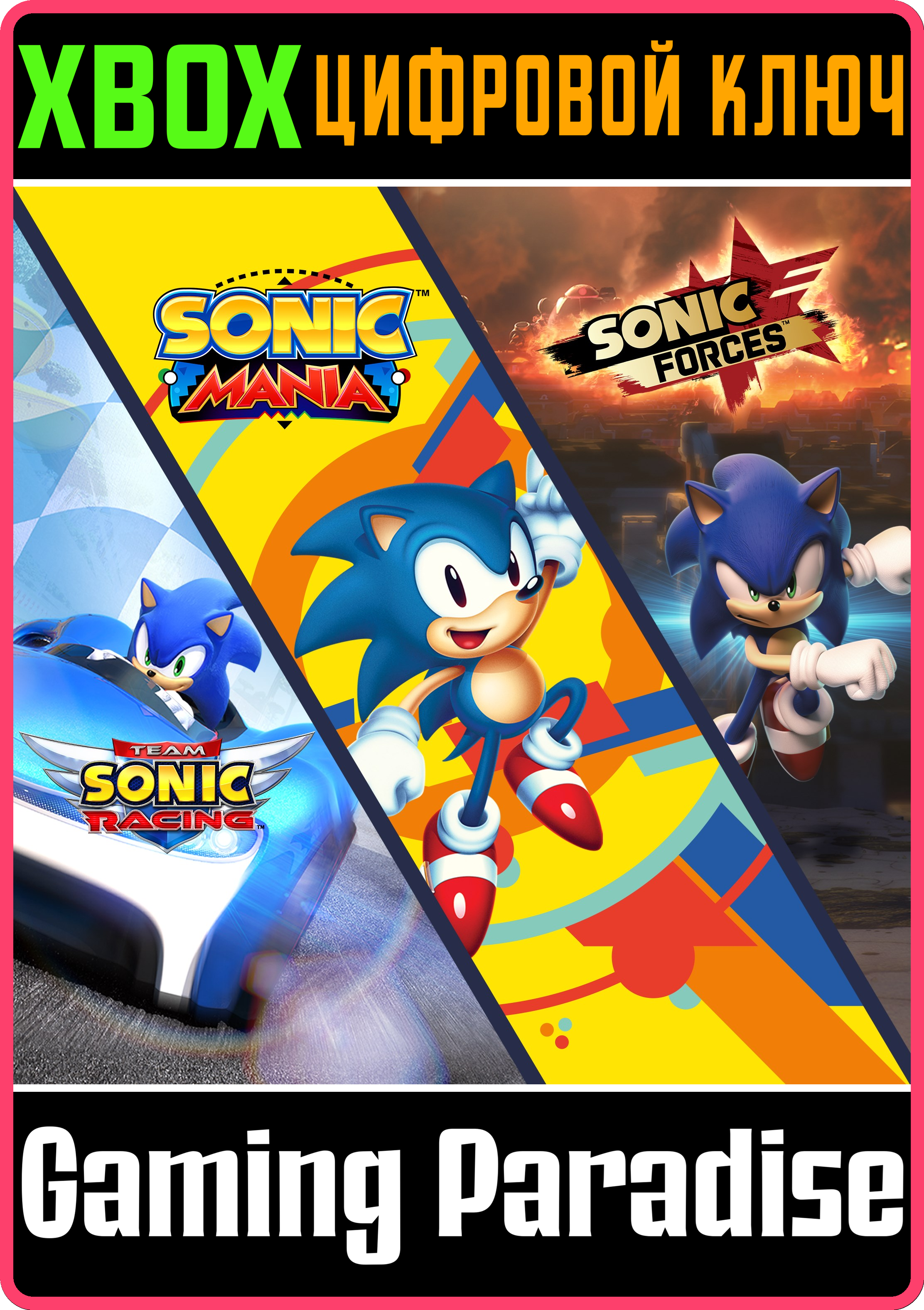 Погрузитесь во вселенную Соника с набором Ultimate*Sonic*Bundle! Вас ждут три захватывающие игры: классический 2D-платформер, 3D-приключение и гонки.