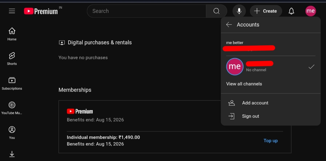 Вы используете ВАШ личный аккаунт YouTube. Предоставленный премиум-аккаунт просто активирует функции для всех аккаунтов, вошедших в одно и то же приложение.