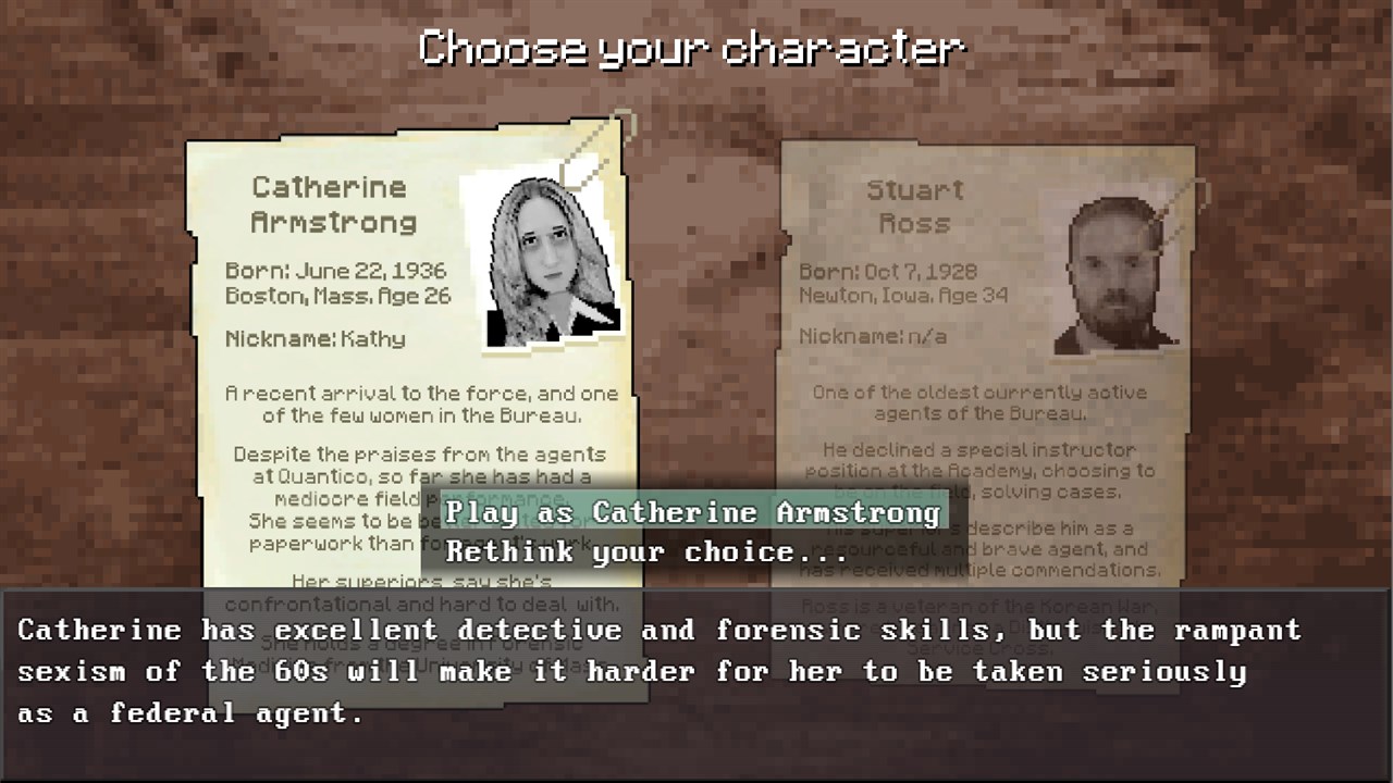 Выберите роль федерального агента Кэтрин Армстронг, молодого новобранца с превосходными научными навыками, или Стюарта Росса, искушнего ветерана. Их уникальные навыки и индивидуальности изменят ход истории.