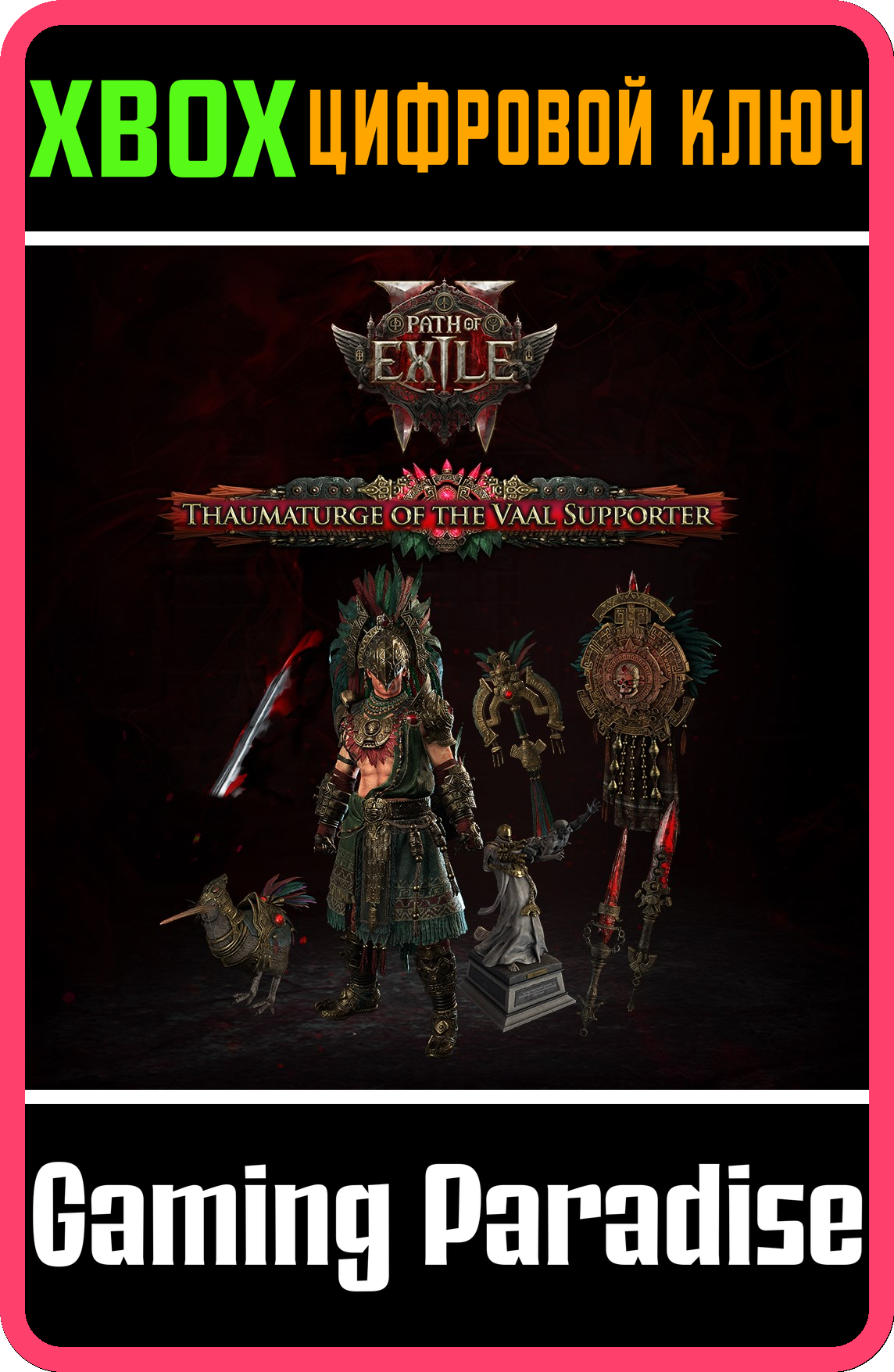 В набор поддержки Волшебника ваал входят ранний доступ к Path of Exile 2, три набора доспехов, три заплечных украшения, эффект оружия, шесть внешних видов оружия, четыре питомца, три украшения для убежища, эффект повышения уровня, убежище, портал, три портретные рамки, три форумных титула, три значка и 1500 монет.