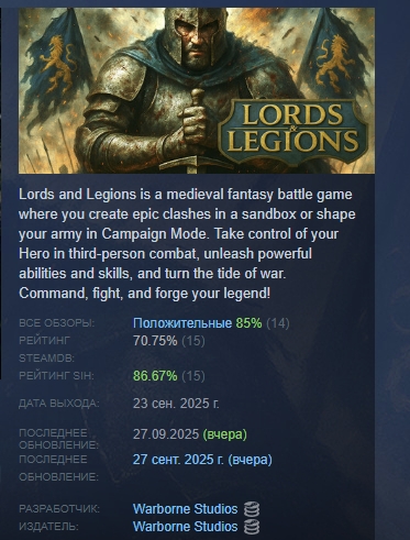Lords and Legions АВТОДОСТАВКА STEAM РОССИЯ