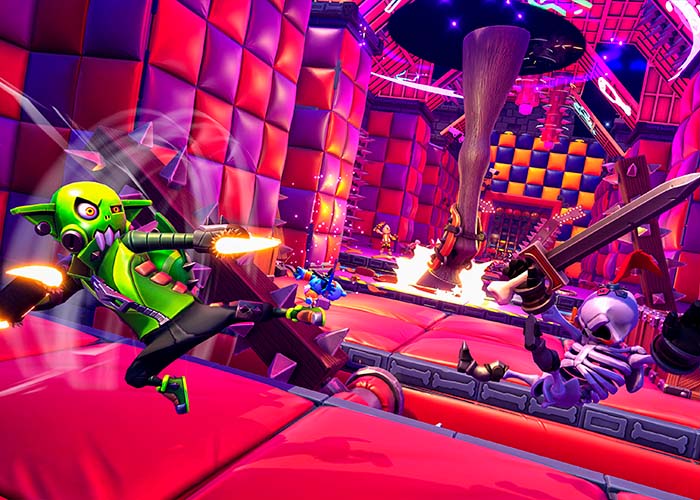 Compete in a co-op party platformer, pitting up to 4 players against official and community-built devious dungeons filled with puzzles to solve, challenges to traverse, and ridiculous monsters to fight. Progress through chaotic dungeons to unlock new abilities and gear on your way to becoming the ultimate contender!