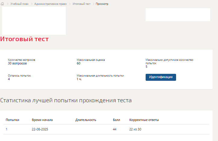 Сдано в 2025г. Верно 22 из 30 вопросов. Скриншот с отметкой прилагается к работе.