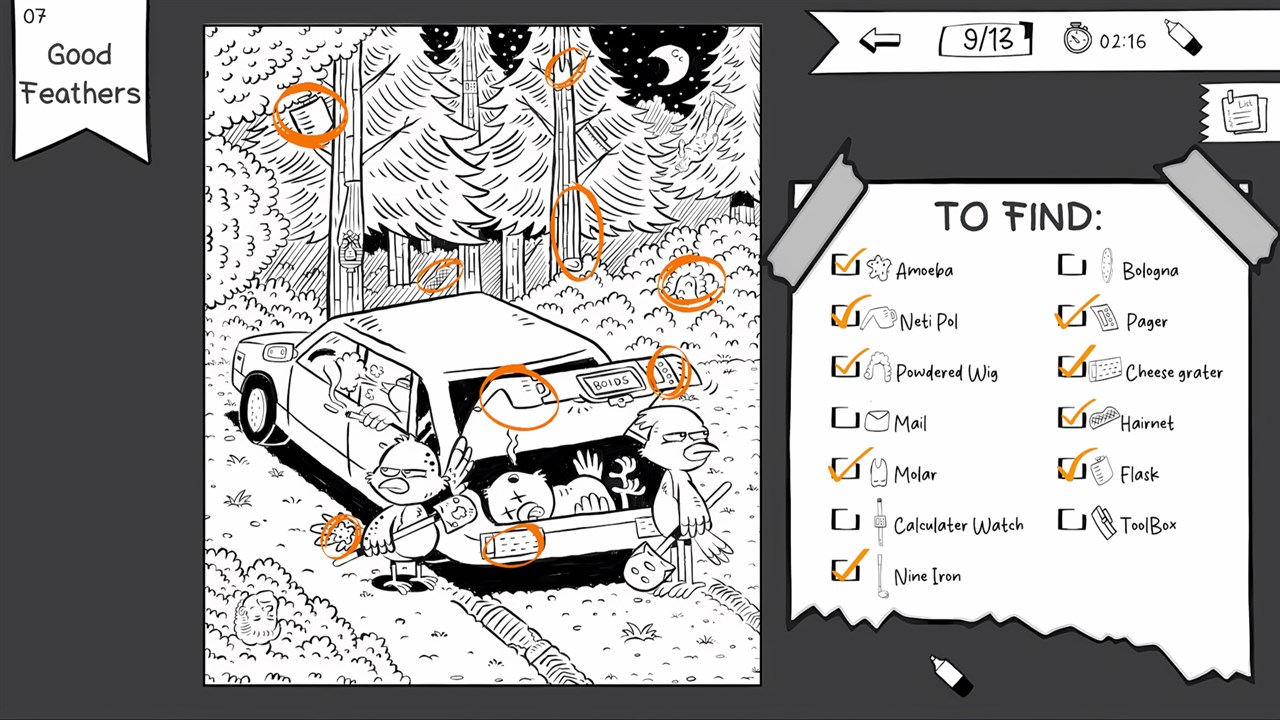 Рисуйте, чтобы находить — увидели цель, нажали на курок, шшхк! — появляется ровный мазок; следом — чёткая галочка в чек*листе и винтажный шелест перелистывания.