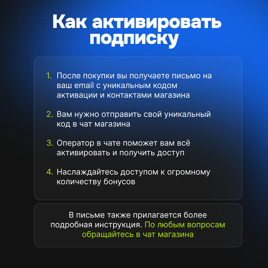 ** Далее наш менеджер активирует подписку на ваш аккаунт