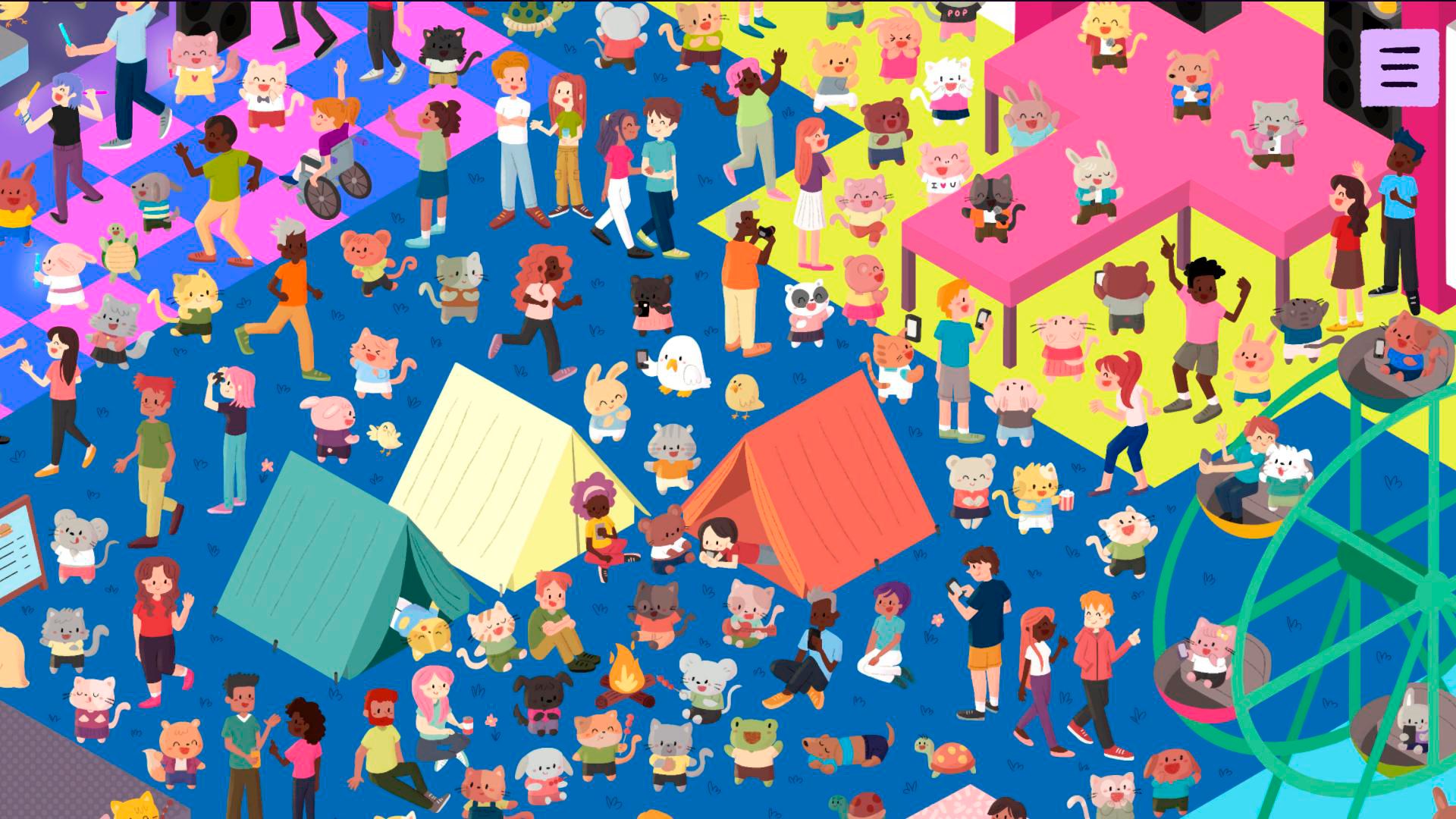 Начните с музыкального фестиваля под открытым небом: сцены с акустикой, попом и электронной музыкой создают атмосферу драйва и веселья. Прогуляйтесь мимо фудтраков, колеса обозрения и кемпинга в мире радости и гармонии.