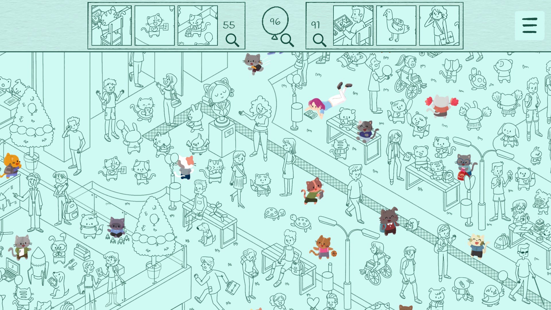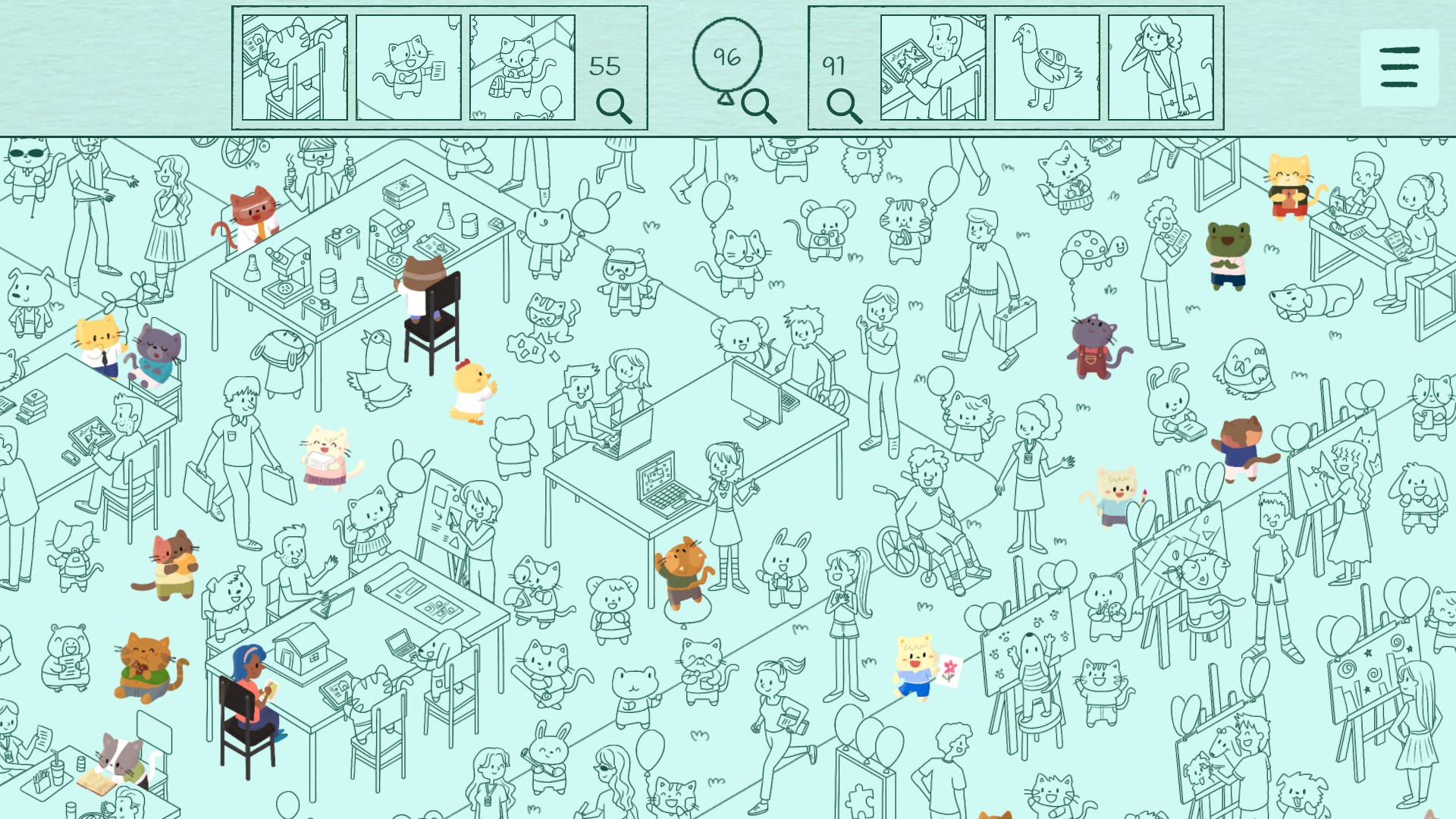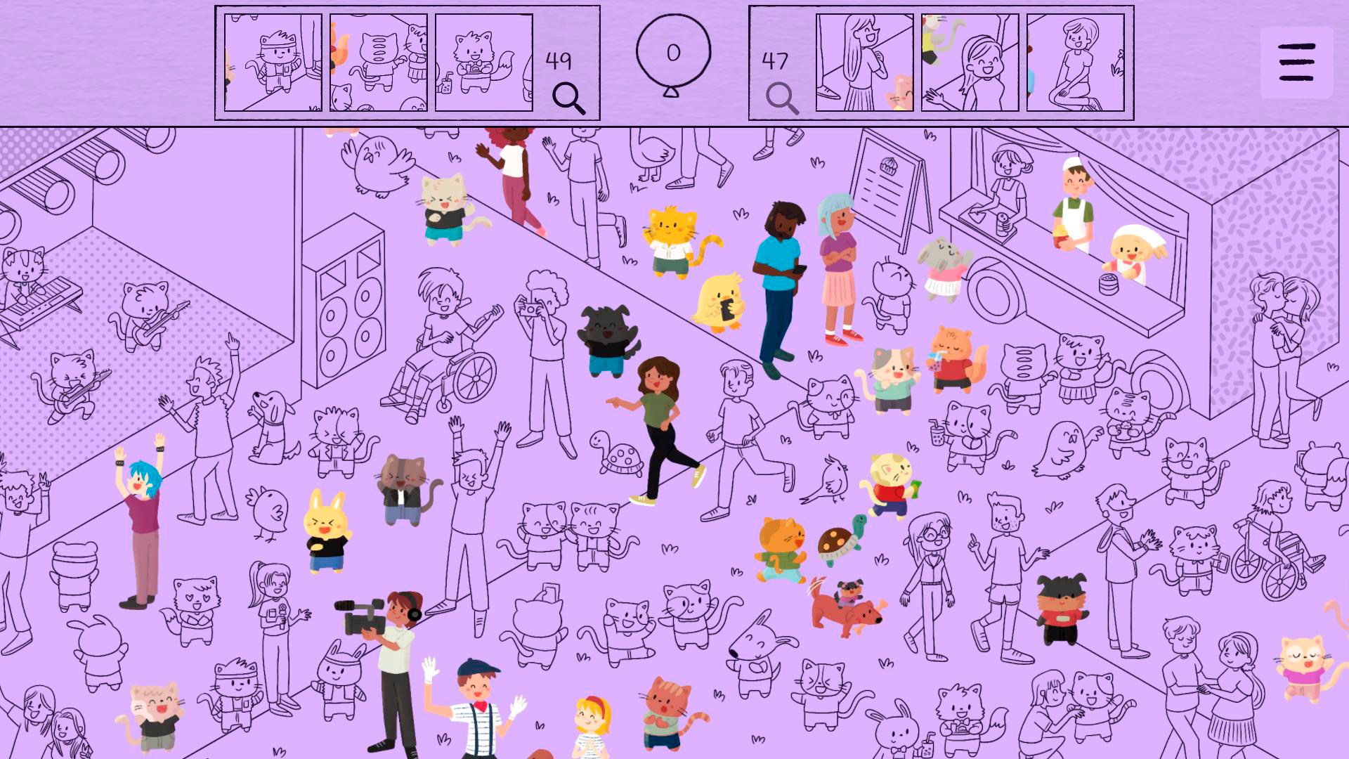 - Коты и друзья: находите милых персонажей в двух подробных сценах.