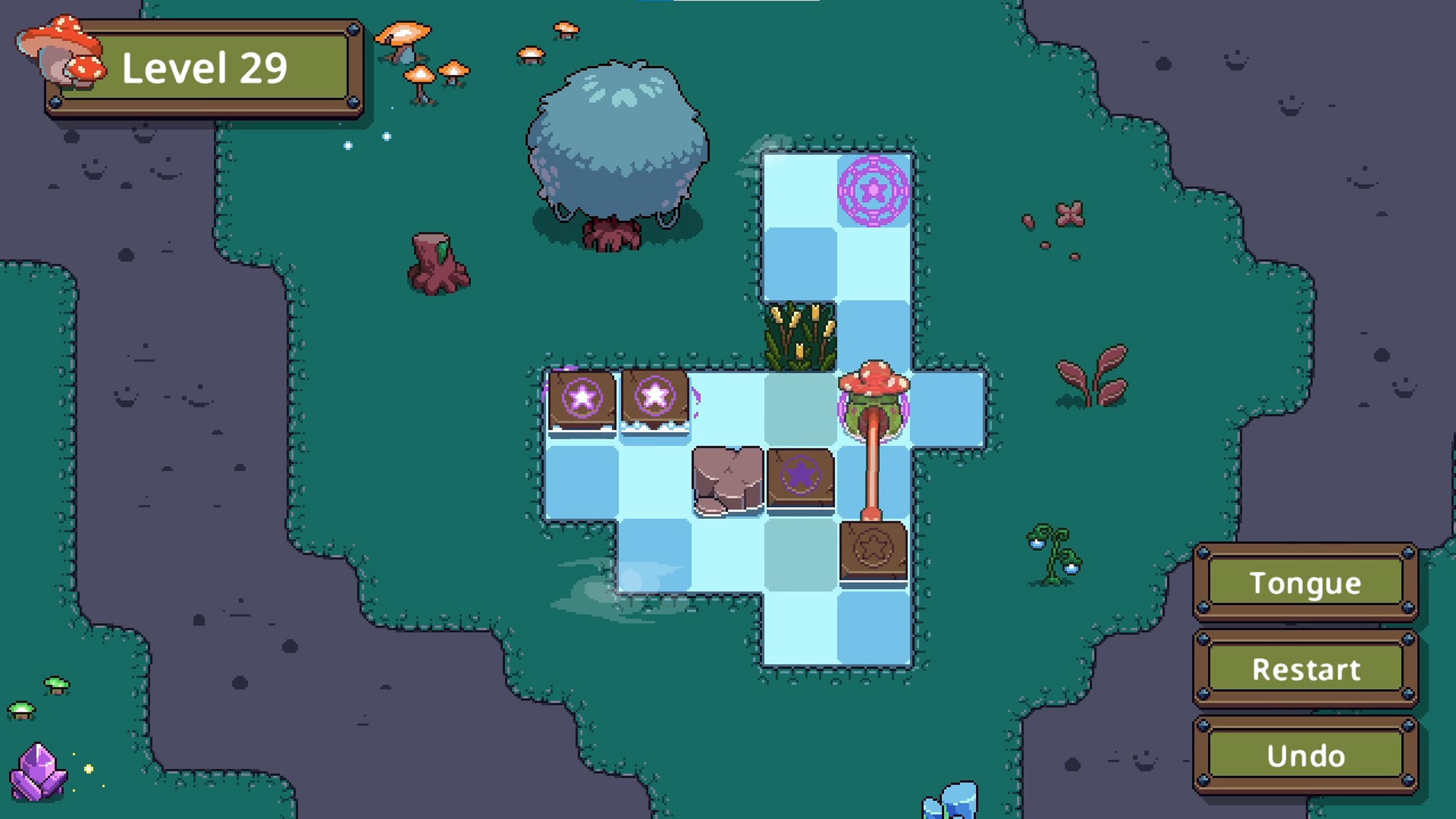 Toad Slide — это 2D пиксельная игра в духе Sokoban, где ты управляешь мистической жабой, перемещающей рунические камни на магические круги, чтобы восстановить баланс болота.