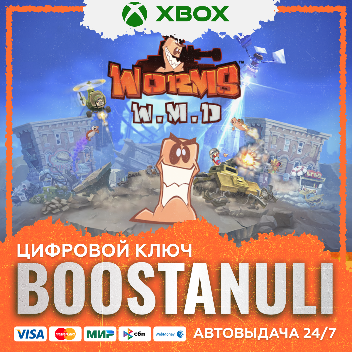 <delivery>Черви вернулись со своей самой разрушительной игрой! С великолепной нарисованной от руки 2D-графикой, совершенно новым оружием, новой функцией крафта, транспортными средствами и зданиями, а также возвращением любимого классического оружия и игровой механики, Worms WMD — это лучший опыт Worms когда-либо. Пройдите 30 уровней возрастающей сложности в режиме кампании с огромным арсеналом нового и классического оружия в вашем распоряжении. Используйте новую технику, чтобы сеять хаос на вражеских линиях, и используйте здания, чтобы получить тактическое преимущество и попытаться доминировать на поле боя! Сразитесь с 5 противниками в уморительной тактической войне с 8 червями с каждой стороны в локальном, онлайн-мультиплеере или рейтинговых матчах. Раздавите своих соперников с помощью Летающего Осла. Измельчите их Святой ручной гранатой. Обрушьте разрушение с помощью вертолетов или скосите их с помощью Танка. С 80 видами оружия и предметов в вашем распоряжении, это самая хаотичная Worms когда-либо! Основные характеристики: Великолепный 2D: Лучшее применение формулы Worms на сегодняшний день, теперь с совершенно новым червяком и прекрасной цифровой 2D-графикой. Техника: Война червей становится серьезной с введением техники впервые в серии. Доминируйте на поле боя на готовых к бою танках, сейте хаос с неба с помощью вертолетов и многое другое! Здания: Получите тактическое преимущество, спрятав головы своих червей в зданиях, чтобы защитить их от прямых атак! Крафт: Больше не нужно ждать, пока ваши противники сделают свой ход! Хватайте ящики для крафта, которые падают с неба во время матчей, чтобы создавать дьявольски улучшенные версии предметов, таких как Электроовца, Пирог-Базука и Граната Священной Шахты, чтобы бросать их во врагов. Классическая физика и игровой процесс Worms: Наш новый движок воссоздает ощущения любимых фанатами игр серии и возвращает классическую и любимую веревку ниндзя. Новое и классическое оружие: в вашем распоряжении более 80 видов оружия и предметов, включая возвращение многих классических предметов и множество новых дополнений, таких как *Проблемная телефонная батарея*, *Нежеланный подарок* и *OMG Attack*. Навесное оружие: как будто 80 видов оружия и предметов недостаточно! Вы найдете разнообразное оружие, размещенное по всему ландшафту, которое позволит вашим воинственным червям сеять еще БОЛЬШЕ хаоса. Уморительный р</delivery>