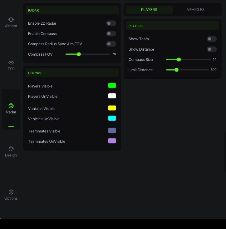 • Синхронизация радиуса компаса с FOV Aimbot