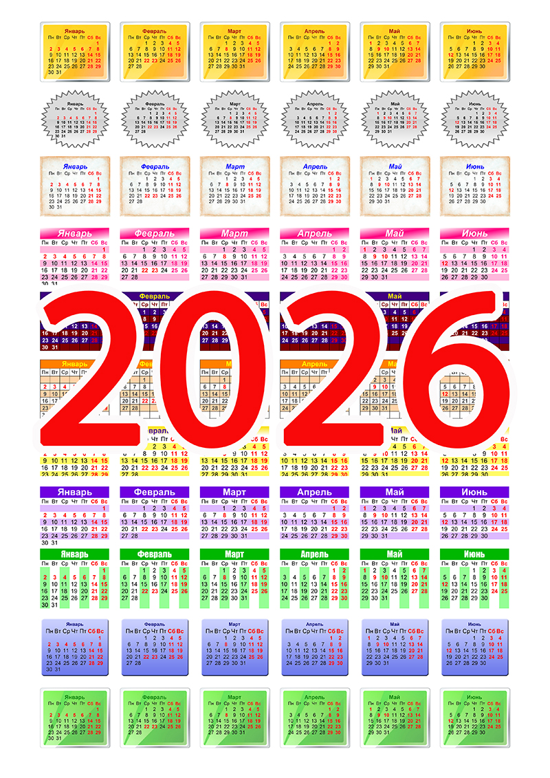 Комплект календарных сеток на 2026 год. 160 календарных сеток.