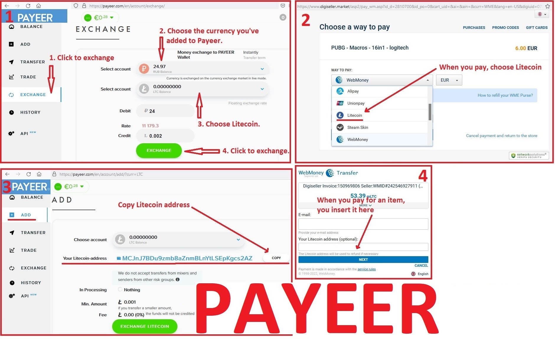 4. В Payeer пополнить Litecoin.