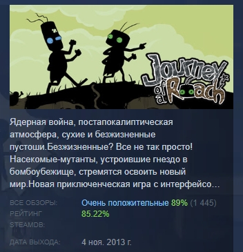 https://store.steampowered.com/app/255300/Journey_of_a_Roach/