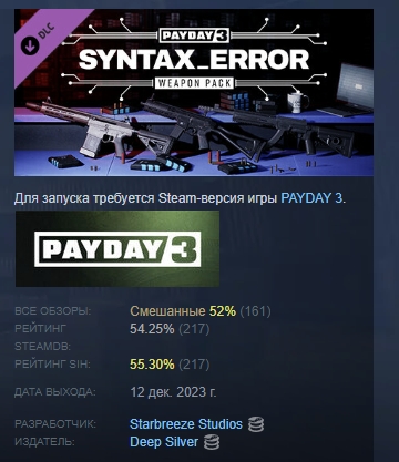 PAYDAY 3: Syntax Error Weapon Pack DLC STEAM РОССИЯ