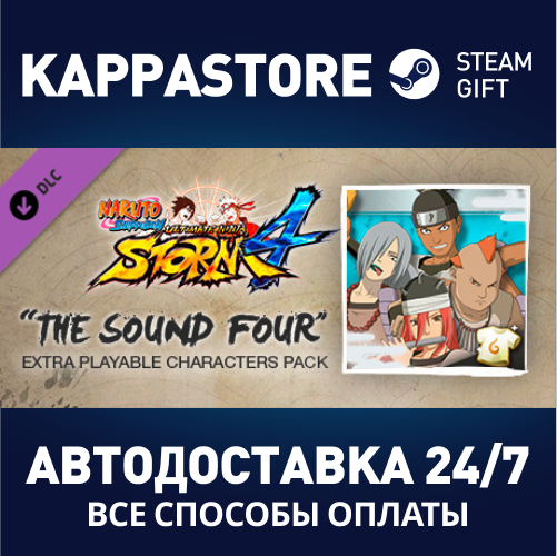 Набор персонажей "Четверка Звука": 4 игровых персонажа 3 комбинированные тайные техники Костюмы из предыдущих игр Голосовая запись Рисунок карты ниндзя Сокровище ниндзя Изображение при добивании