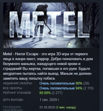 Metel - Horror Escape АВТОДОСТАВКА STEAM РОССИЯ