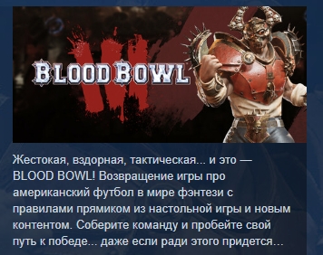 Жестокая, вздорная, тактическая... и это — BLOOD BOWL! Возвращение игры про американский футбол в мире фэнтези с правилами прямиком из настольной игры и новым контентом. Соберите команду и пробейте свой путь к победе... даже если ради этого придется перепрыгивать через безжизненные тела соперников.