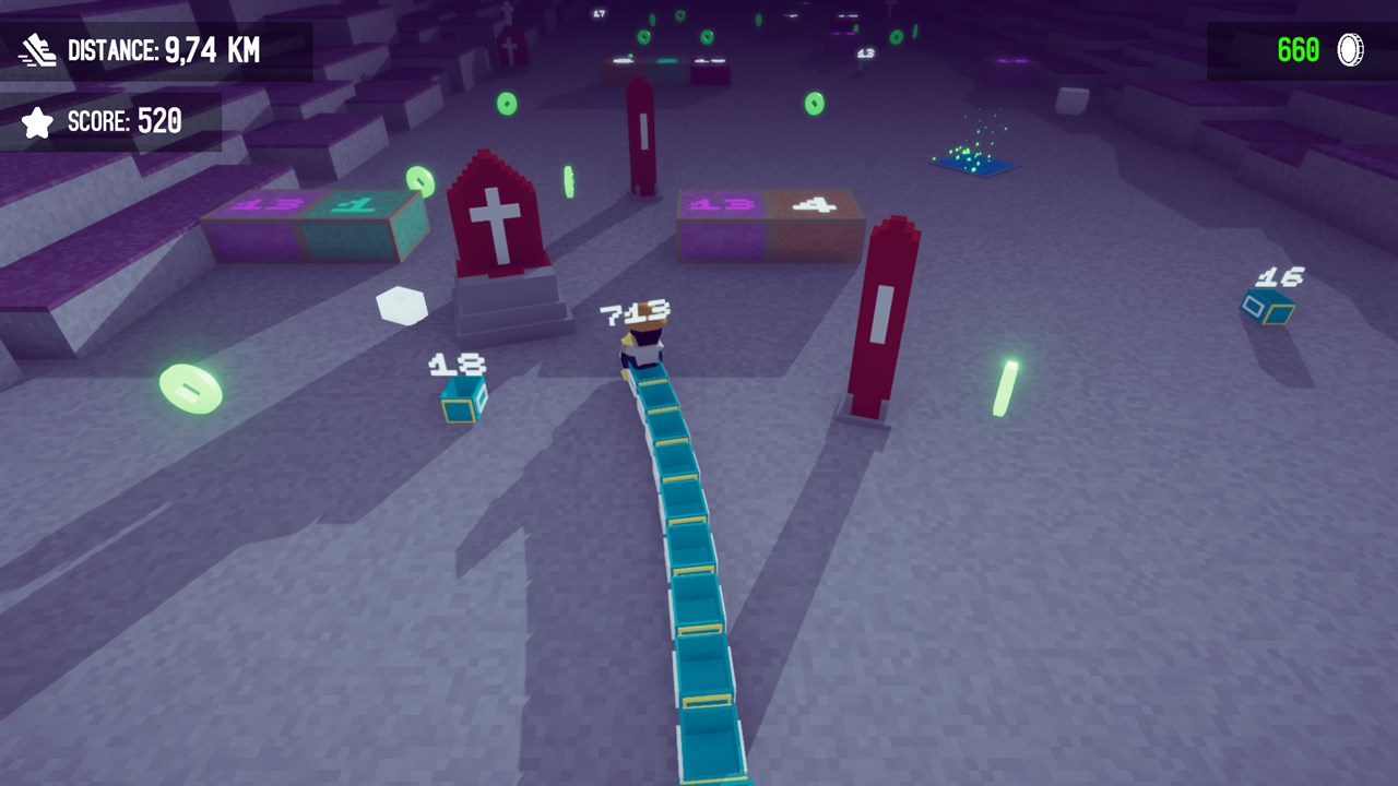 Super Snake Block: Moves automatically and along the way there are coins, snake body parts, boxes, shield, magnet and scenery objects.