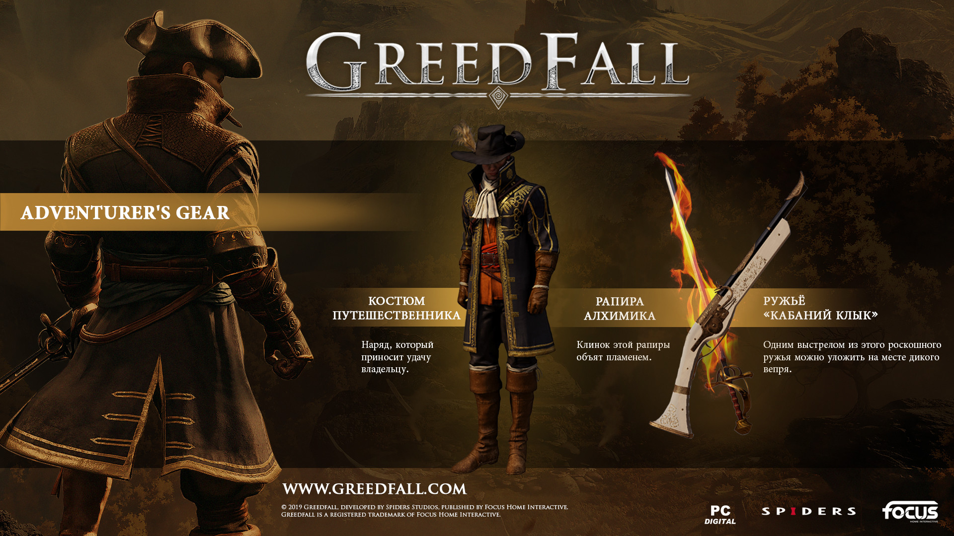 Комплект Adventurer’s Gear DLC содержит особую одежду, без которой не обойтись аристократу в путешествии, а также огнестрельное и холодное оружие, которое подчеркнёт ваши таланты.