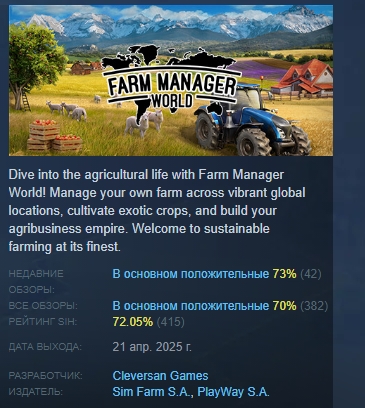 Farm Manager World * АВТОДОСТАВКА STEAM РОССИЯ