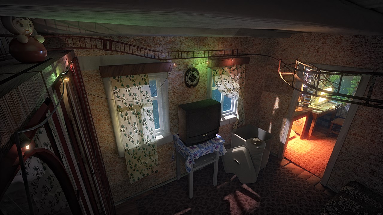 По мере прохождения игроку встретятся диковинные жилые пространства-головоломки: *Будка смотрителя* на столбе электропередач, сложенная из шпал; "Аэроплатформа" c домиками на высоте; "Изба художника", закрепленная прямо на ЛЭП! При всей дикости идей, игроку на интуитивном уровне станет понятно предназначение объектов и их функционал.
