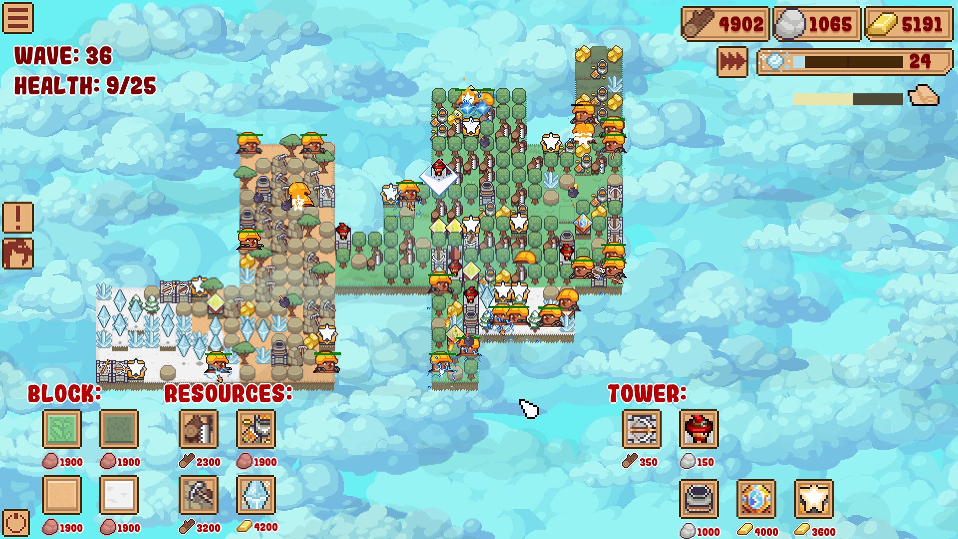 Расположение башен — самый важный аспект в играх Tower Defense. Этот аспект становится еще более ценным в Block Tower: вы можете строить башни на возвышенностях, оставлять свободные блоки для добычи ресурсов или позже строить сильные башни. Кроме того, у всех башен есть шкала опыта, чем раньше вы ее построите, тем сильнее она будет в поздней игре.