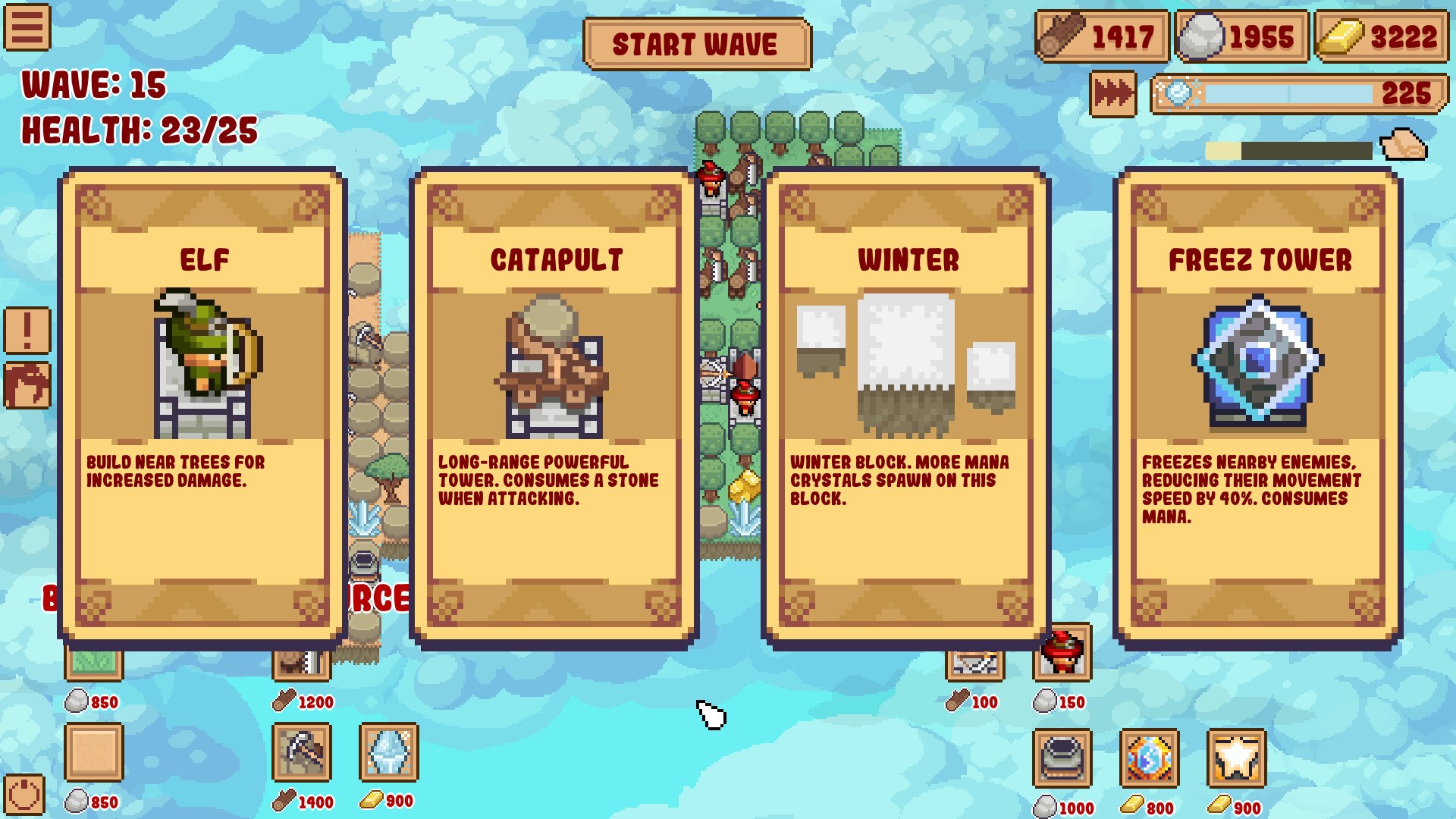 Порядок выбора улучшений в каждой игре очень важен. Вы можете выбрать улучшения, основанные на ресурсах, улучшения волшебной башни или улучшения для сильной ранней защиты, которые позволят вам безопасно перейти к поздней игре. В сочетании со случайно генерируемыми блоками это дает бесконечную ценность воспроизведения.