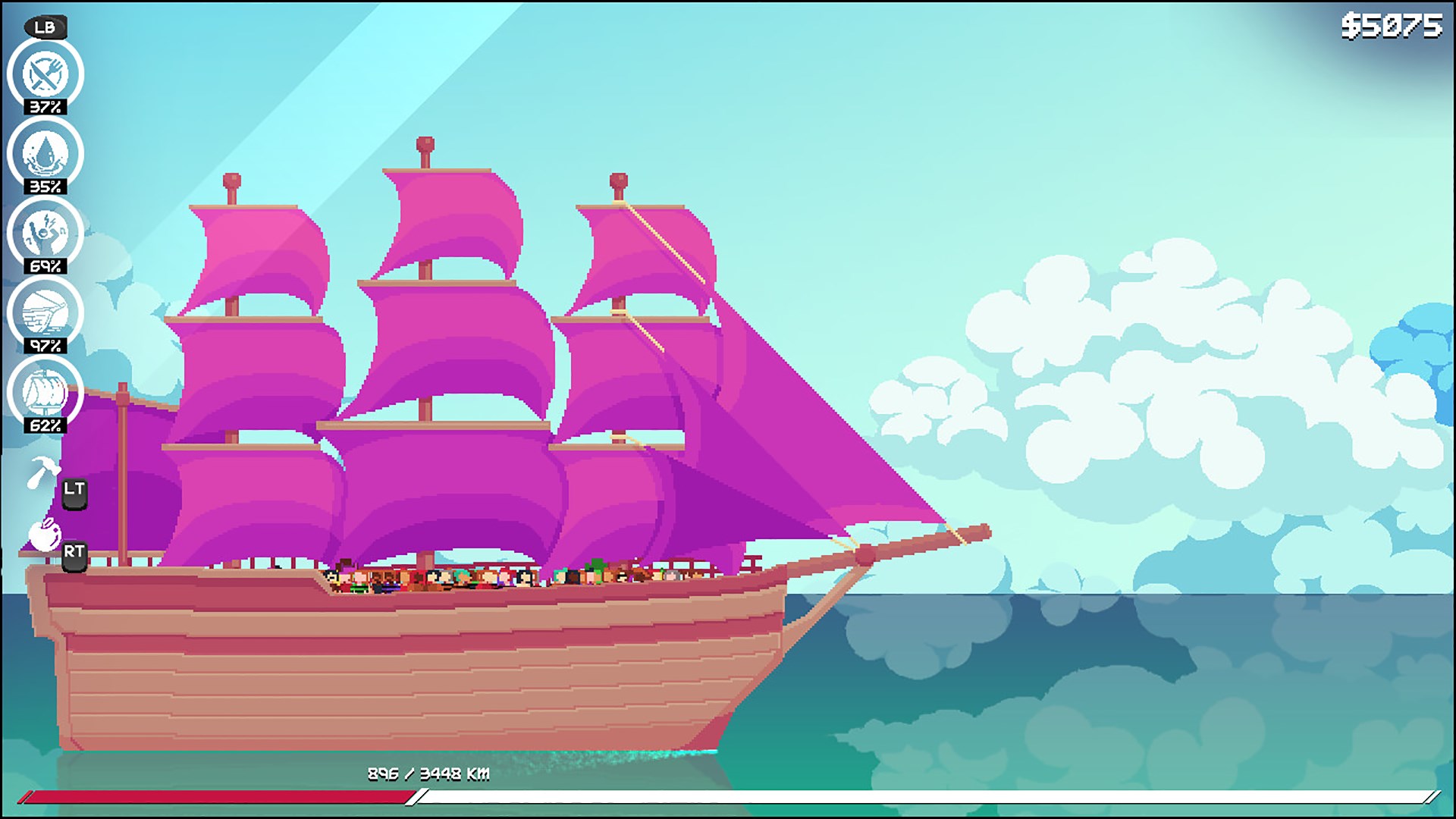 • Tending to the morale, hunger, and thirst of your crew will require you to maintain a supply of food/water and consider whether or not rationing food is required during long journeys