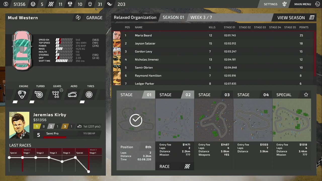 * Сюжетный режим: гоняйтесь быстро и грязно, чтобы проходить сезоны, зарабатывать деньги и опыт и занять свое место на подиуме. Сможете ли вы завоевать свободу и сбежать из шоу *Кровавое ралли*?