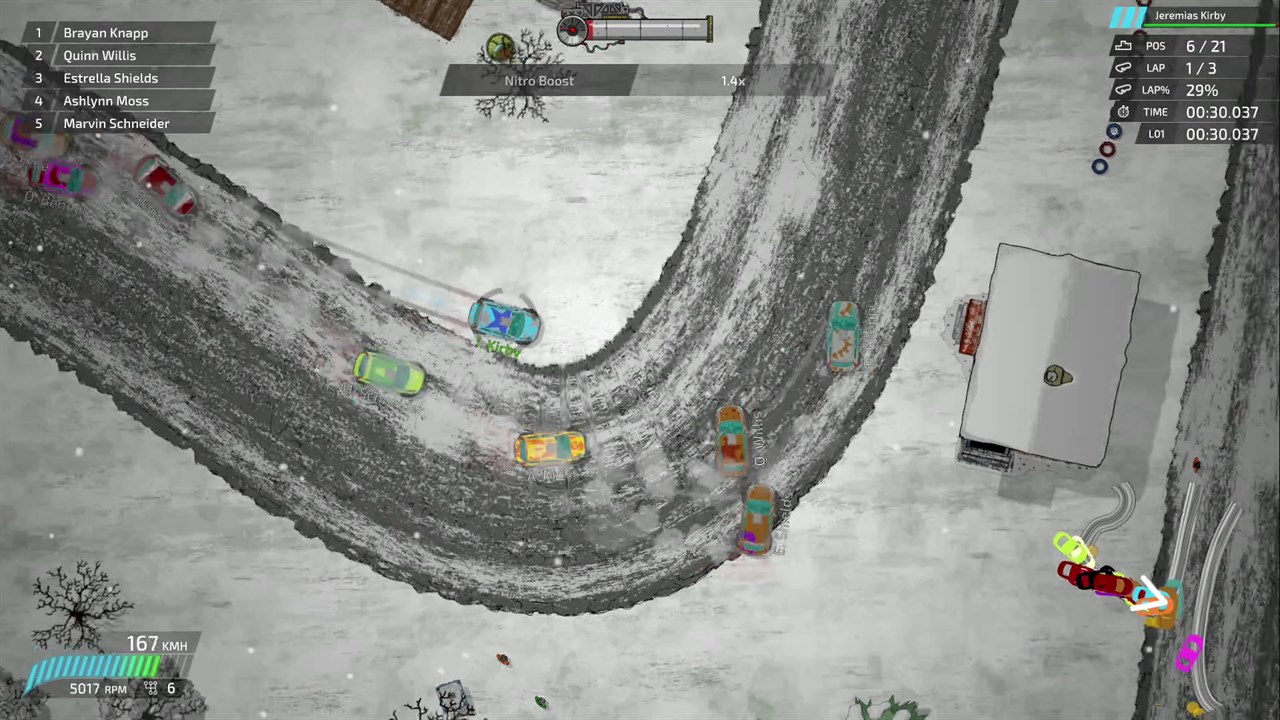 * Состязайтесь с друзьями и соперниками: гоняйтесь и сражайтесь с тремя друзьями в локальном многопользовательском режиме для максимального веселья и хаоса! Покажите свое мастерство езды и займите место в списке лидеров!