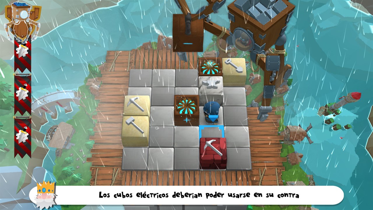 Игра *Замки* поведает вам историю амбициозного короля Гарольда, который желает создать с вашей помощью башню. Чем выше башня, тем больше сложностей возникает во время строительства. Непредсказуемая погода в сочетании с происками ревнивого и злопамятного короля Эдмунда, мстящего королю Гарольду, может помешать вашей работе. Один или несколько человек могут играть тремя способами (сценарий, выживание и соревнование). Поскольку в режиме сценария игра насчитывает свыше 50 уровней, прохождение которых определяется случайным выбором, дважды проходить одну и ту же игру никогда не придётся. Вы управляете инженером, а не самими блоками. Инженеры должны собрать не менее трёх блоков инструментов или цветов, чтобы достичь цели на каждом уровне. Сетка 7x7 позволяет им перемещаться по периметру центральной сетки 5x5, куда сверху падают блоки. Инженеры работают день и ночь несмотря на снег, ветер, туман и грозы. Между тем слуги Эдмунда, вооружённые грозными машинами, готовятся снести башню.
