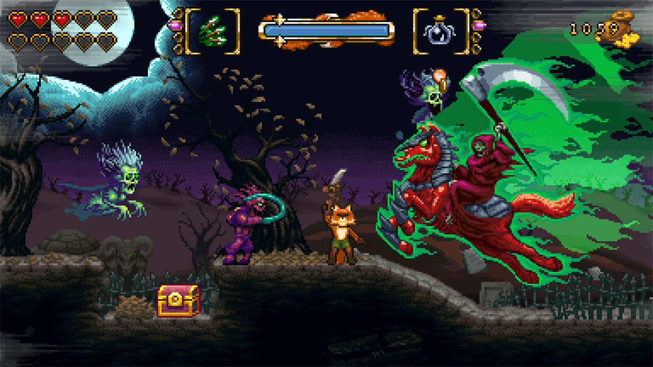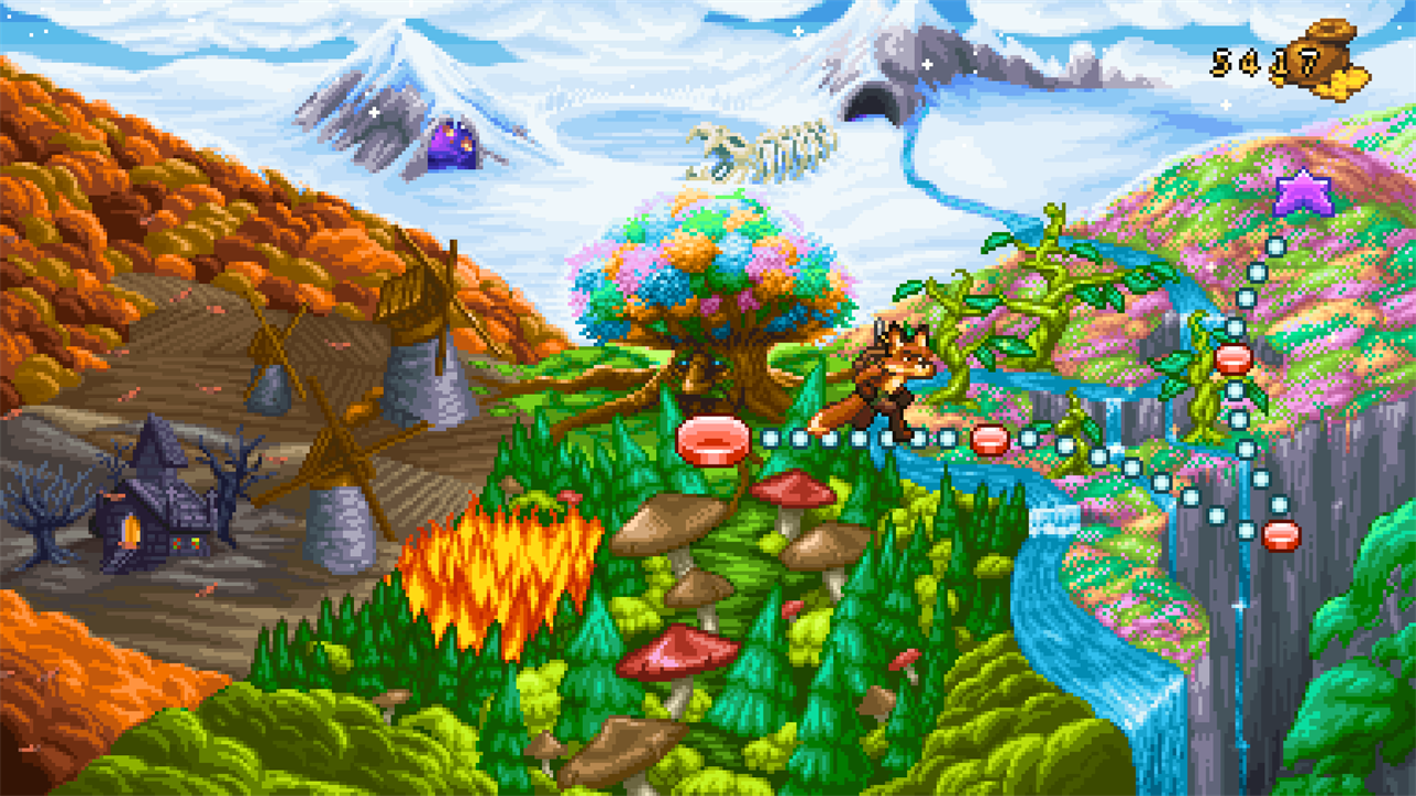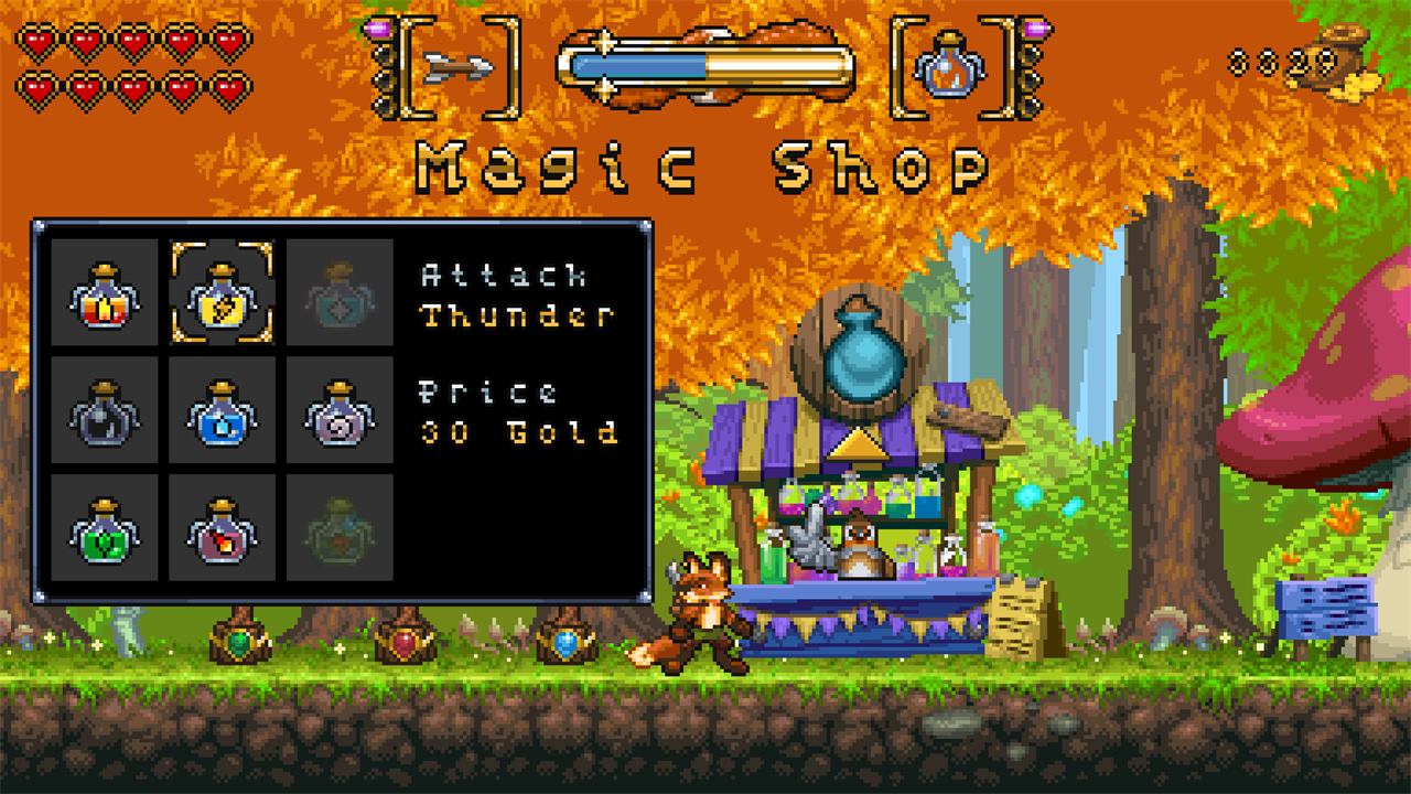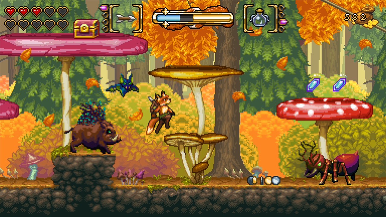 FOX n FORESTS is a 2D action platformer with RPG and puzzle elements inspired by the glorious days of 16-bit! Switch between various seasons on the fly, shoot and slash with your magic melee crossbow and snatch loot to unveil the mystery of the 5th seasons. A thrilling pixel art fable with rewarding super secrets, screen filling bosses and thriving exploration. This is 16-bit how you remember it!