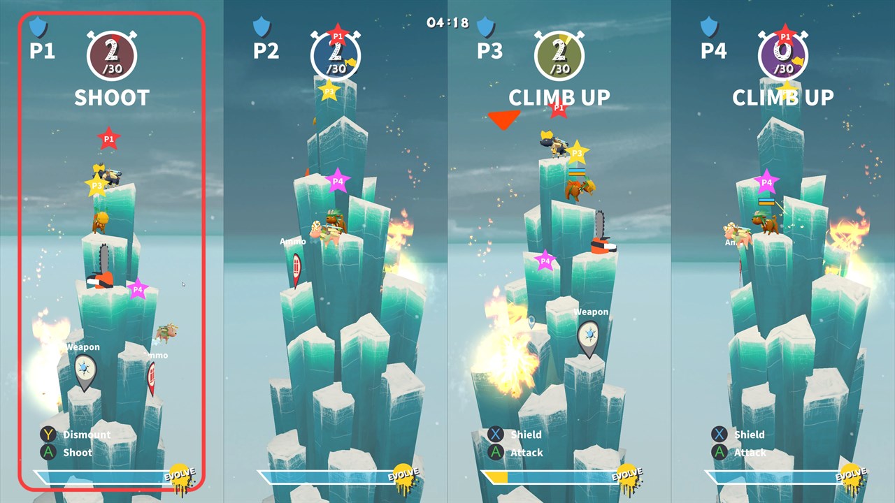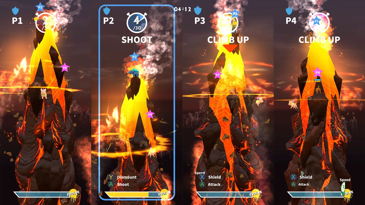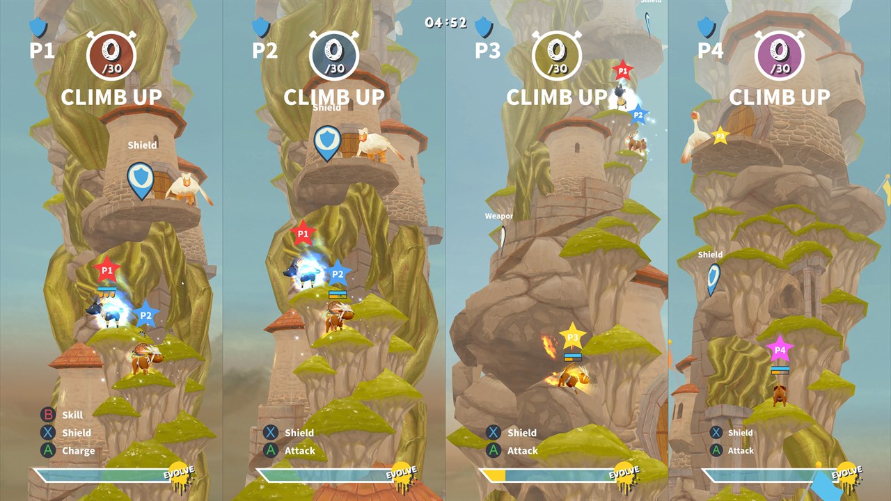 GoatPunks supports up to 4 players in head-to-headbutt, split-screen, action. Grab your controllers or keyboard and get ready to roll. Shields, weapons, and power-ups are scattered about the mountain, and if you manage to get your goat to make it up the top, all the other goats will have a common enemy: you!