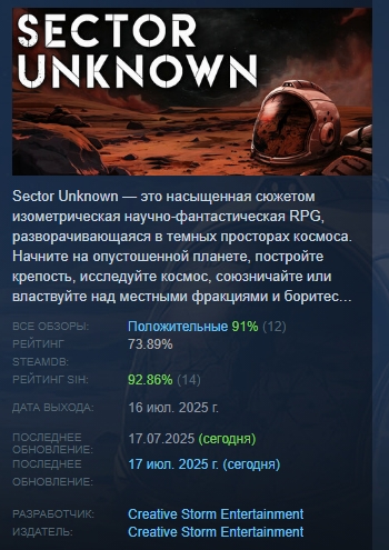 Sector Unknown — это насыщенная сюжетом изометрическая научно-фантастическая RPG, разворачивающаяся в темных просторах космоса. Начните на опустошенной планете, постройте крепость, исследуйте космос, союзничайте или властвуйте над местными фракциями и боритесь с деспотической организацией.