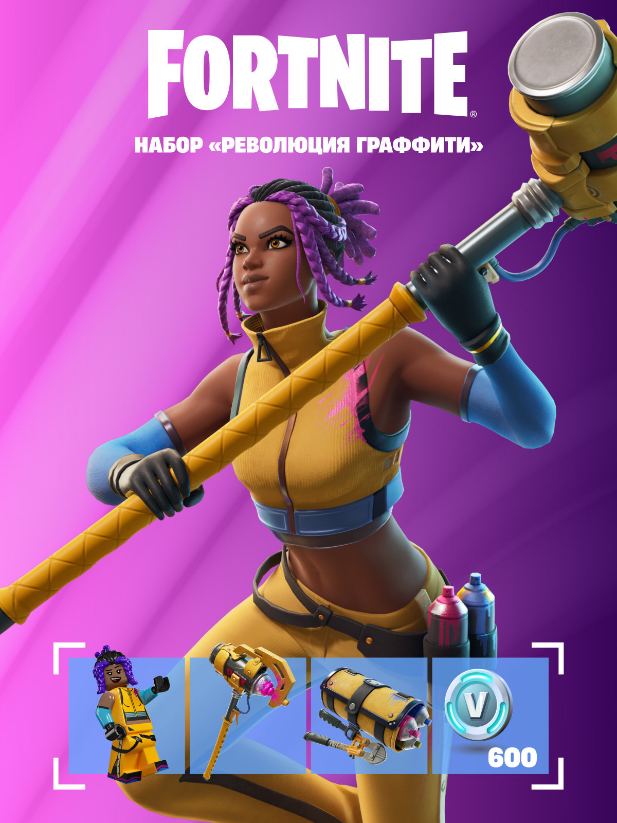 <attention>После оплаты вы мгновенно получаете ключ Fortnite — набор *Революция граффити* + 600 V-Bucks XBOX ONE / XBOX SERIES X|S - ДЛЯ АКТИВАЦИИ ТРЕБУЕТСЯ *КОНСОЛЬ XBOX*. ЕСЛИ У ВАС НЕТ КОНСОЛИ, ТО УСЛУГА ПО АКТИВАЦИИ НАБОРА ДЛЯ EPIC GAMES ПЛАТНАЯ