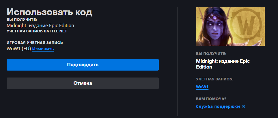 Код для игры World of Warcraft Midnight Pre-Purchase для аккаунтов РФ/РБ.