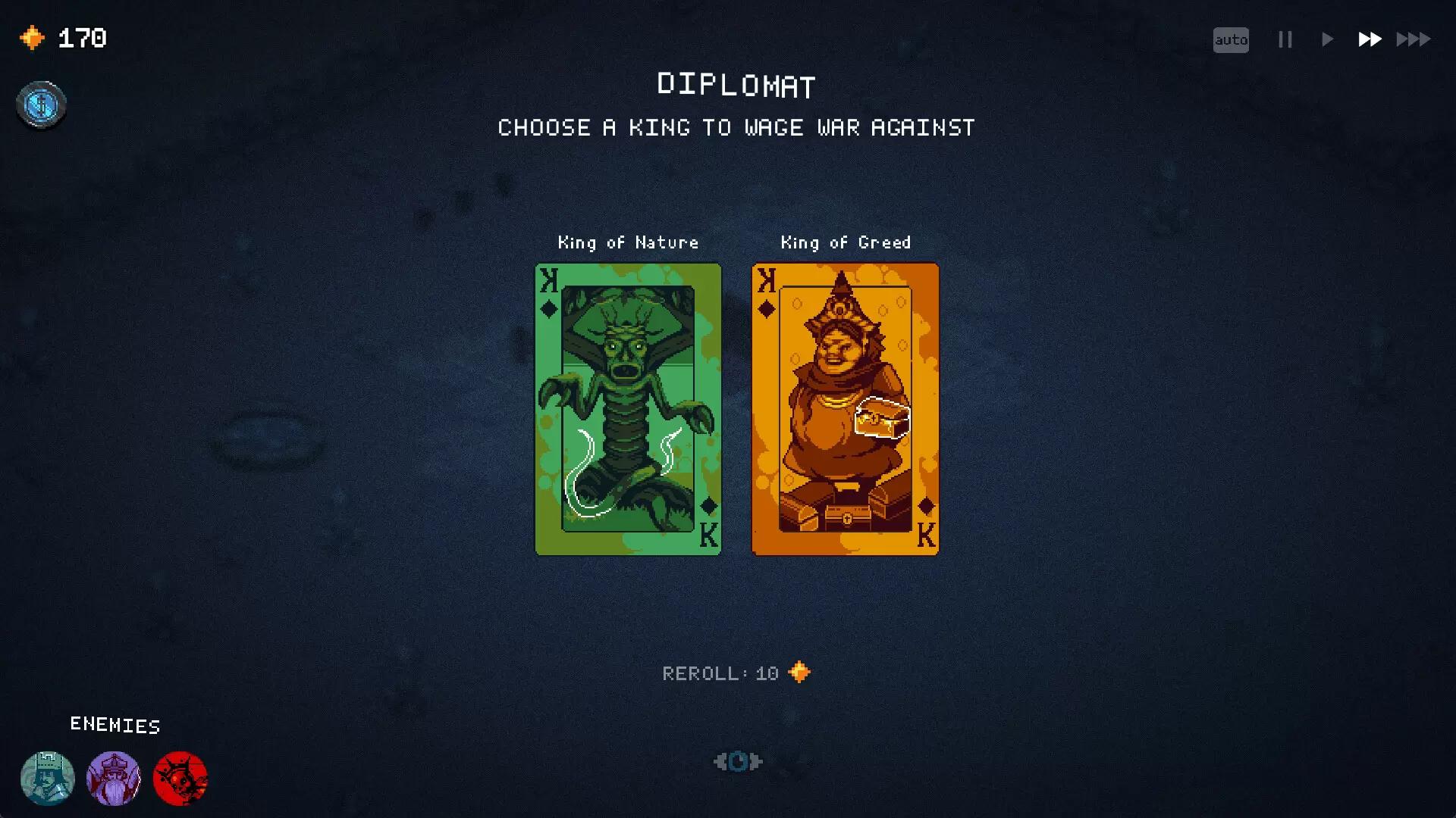 Игра в раннем доступе Примечание: игры в раннем доступе находятся на стадии разработки. Превратите свой город в самое могущественное королевство с помощью множества построек, отрядов, заклинаний и тактических расстановок. Используйте неожиданные комбинации и мощные усиления, чтобы сломать игру и стать непобедимым. Развивайте своё королевство, справляясь с уникальными событиями, и докажите всему миру, что ваше королевство переживет всех! ПОСТРОЙТЕ СТОЛИЦУ Из маленькой деревни – к неприступной цитадели: ваша столица тренирует войска и усиливает их мощь. Развивайте королевство стратегически, стройте на века – и оно переживет любые войны и испытания. ЗАЩИЩАЙТЕ КОРОЛЕВСТВО Мощные рыцари и темные чародеи, смертоносные маги и бомбардиры, орды адских бесов и разумные грибы – десятки уникальных отрядов ждут вашего приказа или атаки! Копите золото для вербовки наемников, применяйте темную магию для воскрешения павших и призывайте силы природы, чтобы сокрушить врагов! СОБЕРИТЕ СВОЮ КОЛОДУ У каждого из 9 королей – уникальная стартовая колода: постройки, войска и заклинания. Но вы можете грабить королей-соперников, нападающих на ваши земли, чтобы получить карты из их колод! Заключайте мир с теми, чьи войска вам не подходят, и объявляйте войну королям, чьи силы жаждете заполучить. Используйте добытые у врагов ресурсы, чтобы создавать комбинации усилений и модификаторов и собрать непобедимую армию! ВЫБИРАЙТЕ СВОЙ ПУТЬ К ВЛАСТИ Комбинируйте карты как угодно, пробуйте безумные стратегии и наблюдайте, как огромные армии сражаются за ваше королевство. Выживайте как можно дольше против всё более сильных врагов или сломайте игру, заставив всех претендентов пасть перед вами! Trademarks, tradenames, and copyrights are property of their respective owners, Sad Socket (2025) and Hooded Horse Inc.™ (2025). All Rights Reserved.