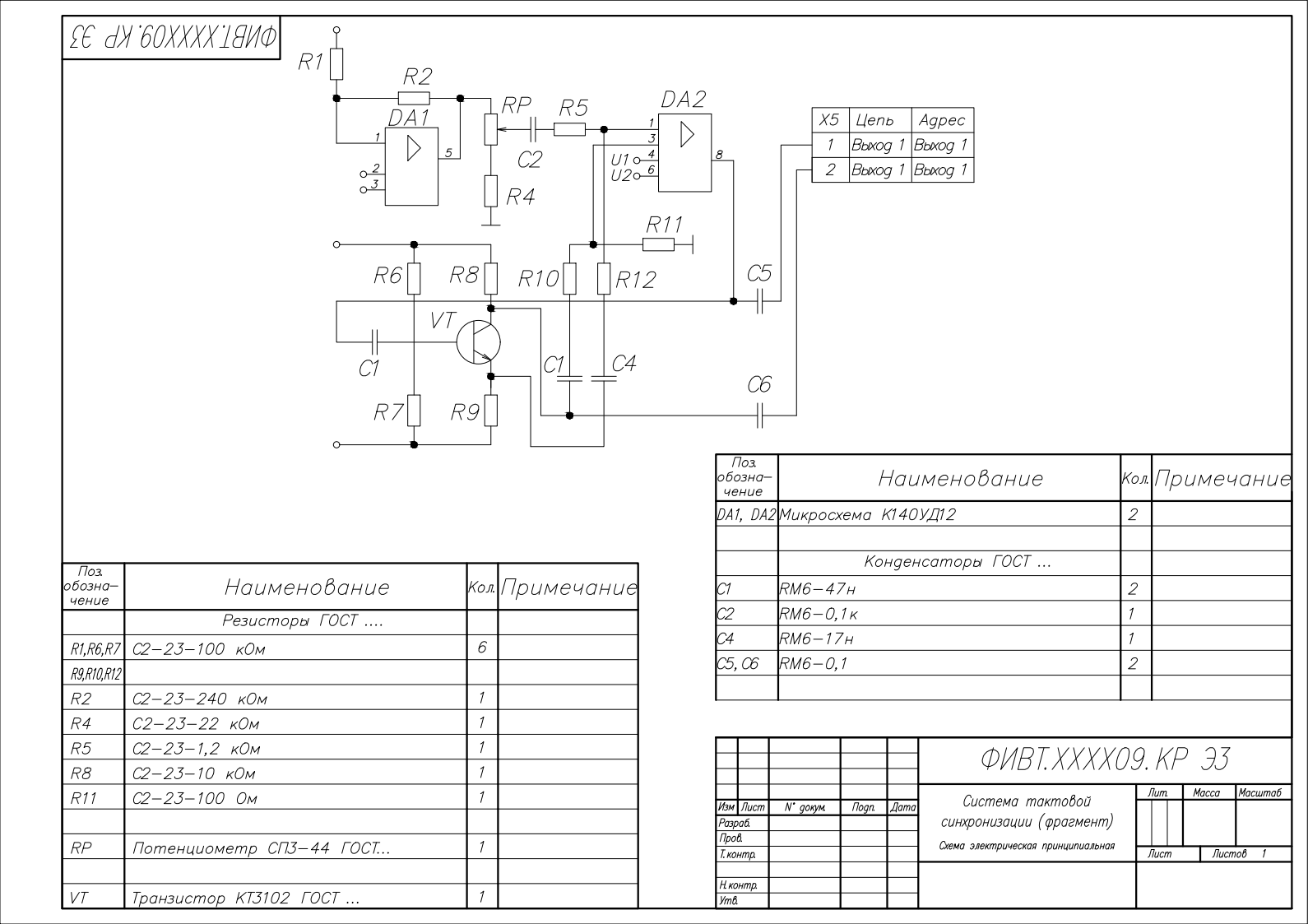 Схема электрическая принципиальная "Система тактовой синхронизации (фрагмент)". Схема выполнена в AutoCAD