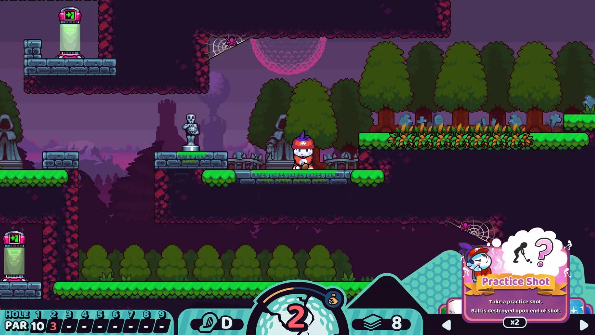 ВОССТАНЬТЕ ИЗ ГОЛЬФОЧИСТИЛИЩА Ваше альтер-эго в игре — Проклятый гольфист. Он оказался в Гольфочистилище из-за нелепой случайности в тот самый момент, когда готов был выполнить победный удар на международном турнире! Легенда гласит, что вернуться в мир живых (и к вожделенной победе на турнире!) можно, если пройти коварные поля Гольфочистилища. Каждое поле охраняет призрак Легендарного кэдди, который посвятит вас в мистические тайны гольфа и поможет на пути к свободе и жизни. ПАР ИЛИ ПРОПАЛ Cursed to Golf — это новая интерпретация жанров гольфа и roguelike. Загоните мяч в лунку, уложившись в пар, или проклятье вернет вас к началу поля! Мало того, что на полях есть бункеры и рафы, там еще полно безумных препятствий вроде мощных вентиляторов, шипов, взрывчатки, телепортов — и чего там только нет. В этой безумной версии классической игры случиться может что угодно! ТУЗ В РУКАВЕ У проклятья вечной игры в гольф в Гольфочистилище есть и свои плюсы! Используйте Птичий полет, чтобы окинуть взглядом все поле и оценить, что вас ждет. Не укладываетесь в пар? Не беда: по всему полю расставлены золотые и серебряные гольф-идолы. Если их разбить, удары восстановятся. Тузы повысят шансы на успех: они позволят вашей потусторонней силе менять правила игры. Дробный мяч, Разворот, Мяч-ракета, Второй шанс — вот лишь несколько из более чем 20 трюков, которые позволят вам крутануть колесо Фортуны в нужную сторону! Каждый удар на счету! ОСОБЕННОСТИ Напряженный, расчетливый и захватывающий геймплей. Случайно сгенерированные поля на 70+ и более лунок. 4 непростых и разнообразных биома. Больше 20 уникальных карт-усилителей. Мини-игры. Сетевые таблицы лидеров. Красочные персонажи, объединенные тематикой гольфа. Красивый пиксель-арт и потрясающие карты в высоком разрешении. Лихой саундтрек в ретро-стиле. Поля на 70 лунок и более. * Chuhai Labs 2022 Published by Thunderful Publishing