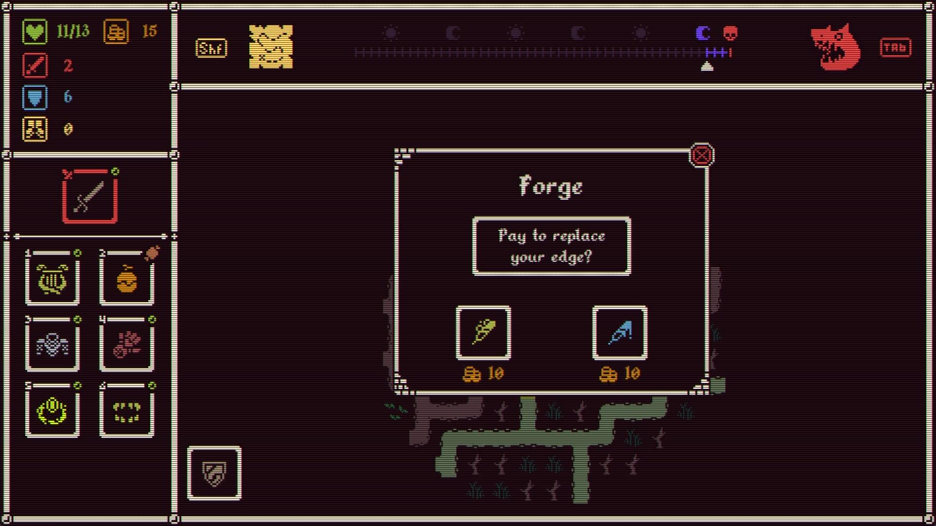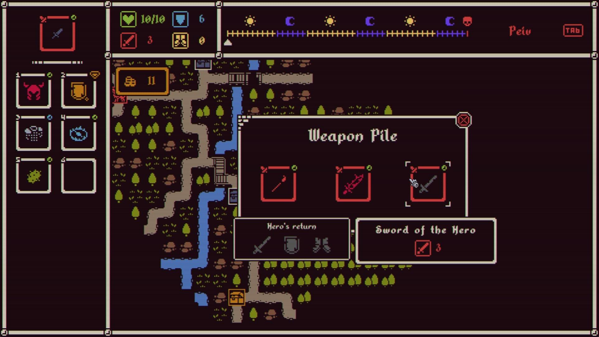 Игра в раннем доступе Давно забытый враг вновь поднял голову: скоро на землю ступит Царь демонов, и если не найдется воителя, готового дать ему отпор, мир неизбежно падет. В этой ролевой игре с элементами процедурной генерации вы будете днем добывать оружие и артефакты, а ночью сражаться с прихвостнями злодея и могучими сущностями из незапамятных эпох. Каждые три дня на охоту выходит новый жуткий слуга Царя, выбранный из 30 с лишним потенциальных боссов. Ваша задача – изучить уникальные способности чудища, чтобы должным образом подготовить своего героя. Раздобудьте оружие и снаряжение, наиболее подходящее для схватки с таким хищником, но остерегайтесь других тварей, ночами рыскающих по окрестностям. Запас времени ограничен, поэтому успеть везде не получится. Будете ли вы затачивать свой клинок в потаенных древних кузнях, за большие деньги покупать сокровенные раритеты у алчных торговцев или искать прочнейшие доспехи и волшебные щиты? Важно подобрать наиболее эффективные средства борьбы с врагом, который угрожает вам сегодня, но при этом не поступиться слишком многим, потому что таких угроз впереди еще много; вы должны будете сразить стражей всех земель, пока перед вами не встанет сам Царь демонов. ГОТОВЬТЕСЬ К СМЕРТИ Каждый босс – это неповторимое испытание, и в вашем распоряжении более 350 предметов, открывающих доступ ко множеству различных стратегий и комбинаций. Когда на вас начнет охоту медведь по прозвищу Острый Коготь, чьи атаки пробивают любую защиту, каким количеством доспехов вы согласитесь пожертвовать в обмен на снаряжение, увеличивающее запас здоровья, скорость или урон? Обычные монстры, подстерегающие путников на дороге, будут постепенно истощать силы вашего героя, и даже если вы одолеете Острого Когтя, следующих трех дней может не хватить на то, чтобы снова раздобыть комплект брони в преддверии очередной страшной битвы. Возможно, взамен доспехов вы отыщете несколько предметов, обеспечивающих прибавку к показателям скорости и атаки, и это позволит очень быстро расправляться с противниками – порой еще до того, как те нанесут первый удар. А затем, если вам повезет набрести на Шафрановое перо, можно будет за счет своей повышенной скорости залечивать раны прямо по ходу боя. Но случись так, что на вас начнет охоту Черный Рыцарь, который скопирует себе вашу силу атаки, нужно будет сделать ставку на броню: если на вас Острая чешуя, отражающая удары, и Рубиновые серьги, каждый второй ход наносящие повреждения врагу, Черный Рыцарь будет получать постоянный урон, при этом не имея возможности усилиться за ваш счет. Однако если в ходе странствий вам попадется волшебное оружие, осмелитесь ли вы взять его с собой? Оно упрочит мощь Черного Рыцаря в грядущей схватке, но станет вам большим подспорьем, если вы ее переживете… К каждому чудищу можно найти не один подход, по-разному сочетая предметы снаряжения, однако вам регулярно придется идти на компромиссы, балансируя между текущими и будущими угрозами; место в вещевом мешке ограничено, поэтому надо выбирать с умом и адаптироваться к ситуации. СРАЖАЙТЕСЬ С ДРУГИМИ ИГРОКАМИ В игре также представлен асинхронный сетевой режим, *Кузница владык*. В борьбе за корону поверженного Царя демонов вашему воителю предстоит схлестнуться с героями других игроков, и это противостояние п