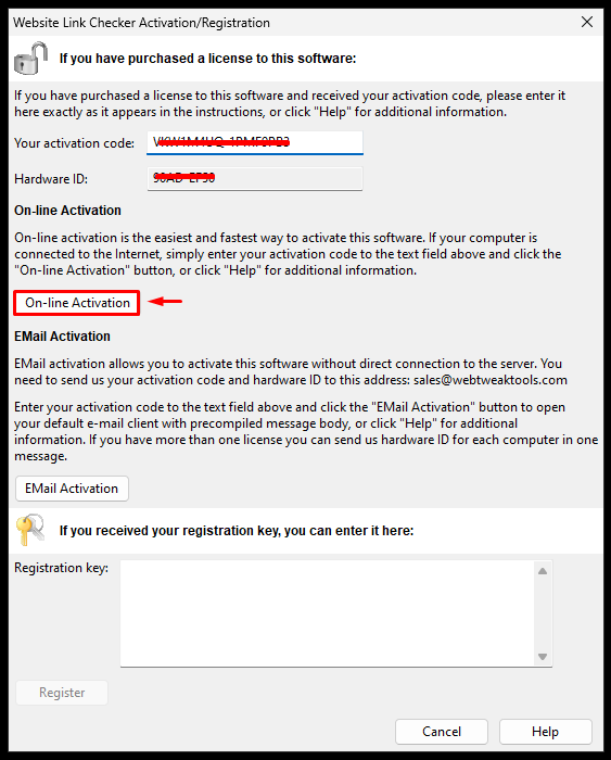 * Следуйте инструкциям во время установки программы, затем перейдите в меню "Активировать/Зарегистрировать".