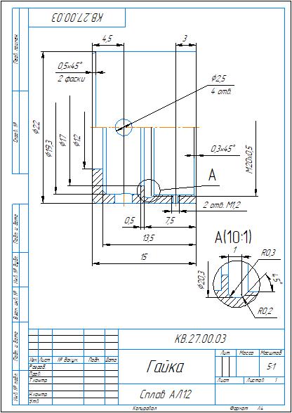 Рабочий чертеж детали гайка KV.27.00.03 в программе Компас 3D
