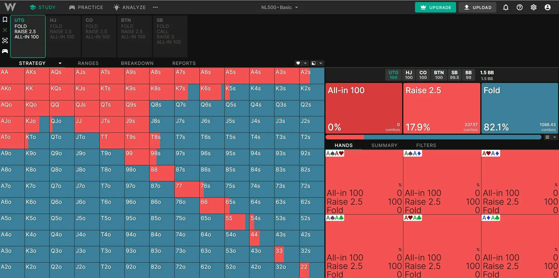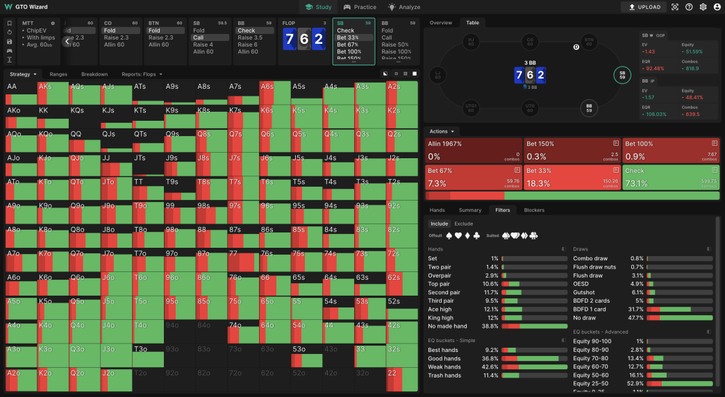 GTO Wizard — это инструмент для изучения покера, который предлагает возможность просматривать решения, практиковаться в реальных ситуациях и анализировать историю своих раздач.