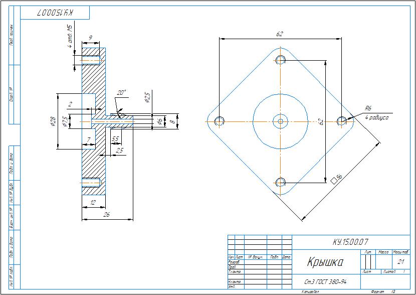 КУ.15.00.07 крышка - чертеж детали