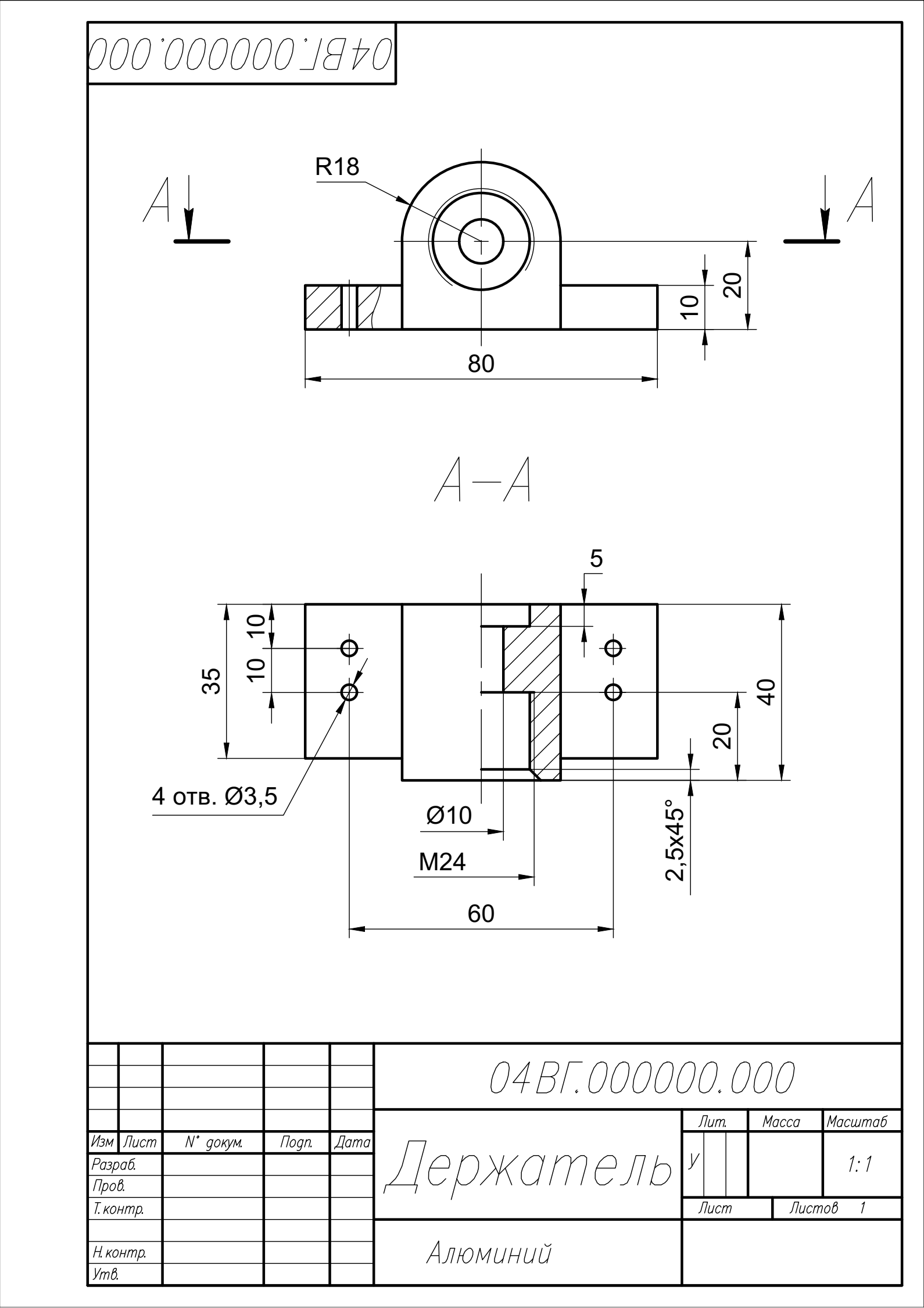 04ВГ.000000.000 держатель - чертеж детали