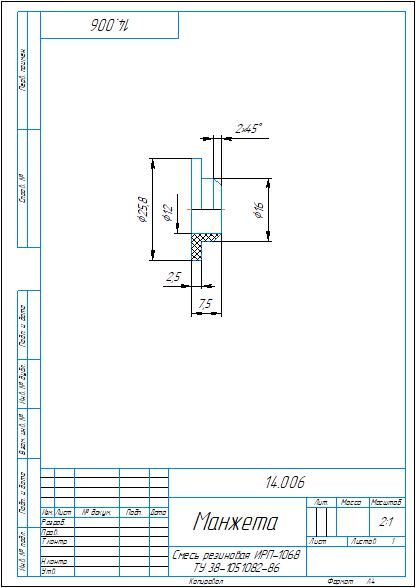 Рабочий чертеж и 3D модель детали манжета 14.006 из сборки 14.000 пневмораспределитель альбома по деталированию Аксарина. Чертеж и модель выполнены в программе Компас 3D